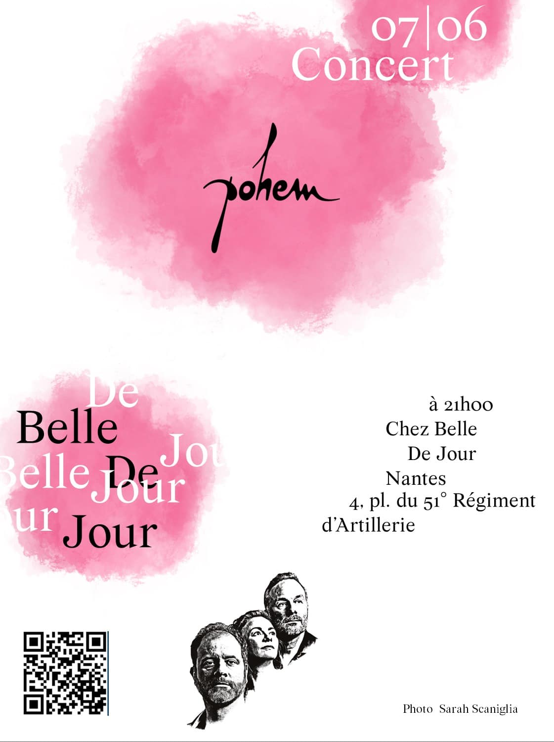 Pohem propose une musique intense, généreuse et touchante, entre jazz, pop et musique impressionniste. Sur Scène, 3 musiciens pour 6 instruments : Charline Dematteo (Piano, Chant), Benoist Foulonneau (Saxophone, Bugle, Glockenspiel) et Thomas Krzyzaniak (Contrebasse). Un trio inclassable sélectionné en 2022 par les RDV de l’Erdre pour ses compositions uniques.