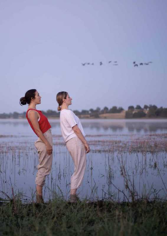 Lors des parades amoureuses, les grues entament le plus spectaculaire de leur ensemble chorégraphique. Des sauts, des pas chassés, des battements d’ailes, des cous enlacés… Le film documentaire est consacré à ce phénomène animal : la danse de la grue. Accompagnés par les grues à l’image, les danseuses interpréteront “Parades”. Retrouver dans le corps des sensations liées aux mouvements des grues pour écrire une proposition gestuelle : des bras qui se déploient, des dos qui se cambrent, un sautillement.