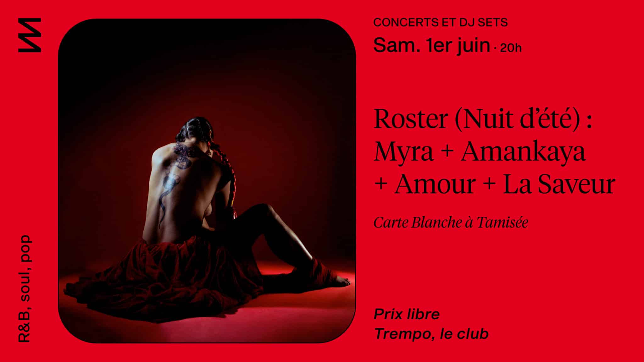 Roster (Nuit d’été) : Myra + Amankaya + Amour + La Saveur
