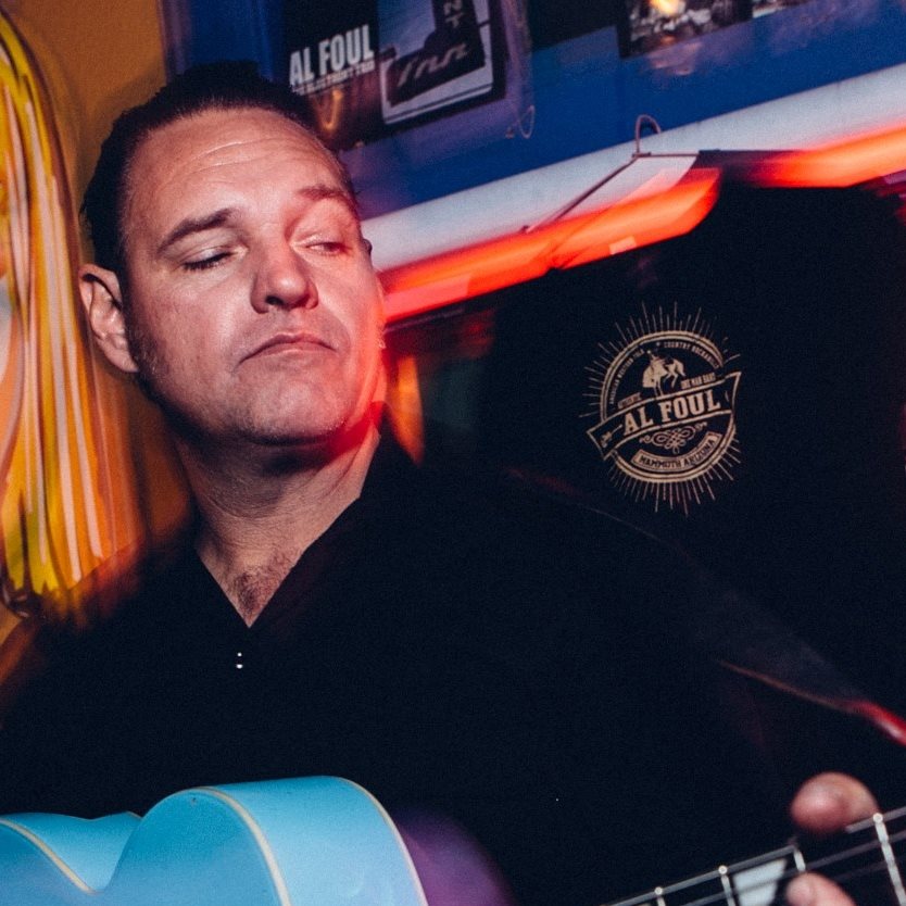 Alan Lewis Curtis, alias Al Foul, c’est déjà plus de 30 années au service du rock’n’roll. Il a grandi au sud de Boston, ville de Jonathan Richman & The Modern Lovers, Son enfance est plutôt fruste, entre une mère polonaise ayant souffert très tôt de sclérose en plaque et un père ouvrier en aciérie, grande gueule et bambocheur. Toutefois, le paternel l’initie à Link Wray ou Charlie Rich : une bénédiction pour la suite. On comprend pourquoi, à l’école du rock’n’roll, il suit davantage les classes de Johnny Cash et Woody Guthrie que celles de Ricky Nelson ou Pat Boone. Adolescent, il quitte le remuant domicile familial pour faire sa vie sur la route, ce qui le conduit à Tucson où il s’établit, se partageant entre petit boulots et musique. Petit à petit, il vit de sa rustique formule one-man band, où il passe de reprises du répertoire des pionniers folk-rock à ses propres compositions, sans que cela ne jure. Al Foul possède ce talent rare de conteur qui vous plonge illico dans les USA des 50’s. Une véritable légende vivante !