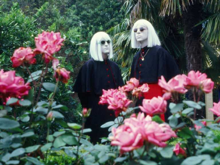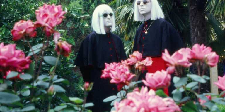 Deb Demure et Mona D pourraient être des enfants du Village des Damnés (de John Carpenter) qui auraient grandi. Cheveux blonds platines, vêtements et lunettes noires, les deux curieux protagonistes derrière le duo Drab Majesty se ressemblent comme un copier-coller si bien qu’on ne sait parfois plus qui est qui. En 2011, Andrew Clinco (alors batteur de Mariages et Black Mare) imagine le projet en même temps qu’il crée son alter ego, Deb Demure. Jusqu’en 2016, Deb porte son projet cold wave en solo avant d’être rejoint par le claviériste Alex Nicolaou, alias Mona D. Ensemble, ils écrivent des morceaux sur les suicides collectifs, les sectes et autres réjouissances. Derrière une mise en scène bizarroïde et des textes glauques, la musique – jusqu’au dernier EP An Object in Motion sorti cette année – est étonnement pop et lisible.