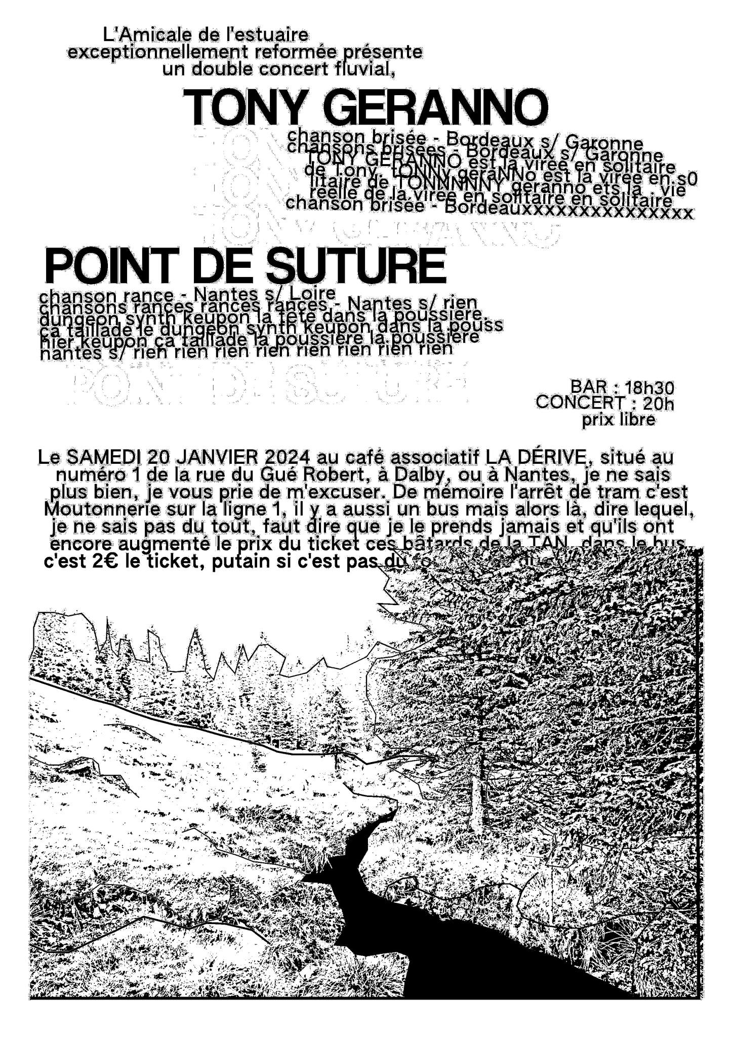 Virée en solitaire de Tony, membre de plusieurs groupes punk, pop, folk ou expérimental ( Épais, (Rires), Bizmiz, Moloch/Monolyth, Sin Sol, Les Conservatoires… ).