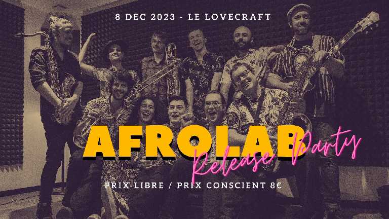 AFROLAB, groupe d’afrobeat nantais, joue une musique métissée, fusionnant jazz, funk, soul et mandingue. Cet Afrobeat caméléon, teinté de diverses inspirations, follement rythmé, agrémenté de guitares entrelacées et de riffs soufflants puissants et mélodiques, saura te faire transpirer et t’essouffler comme jamais ! ✨