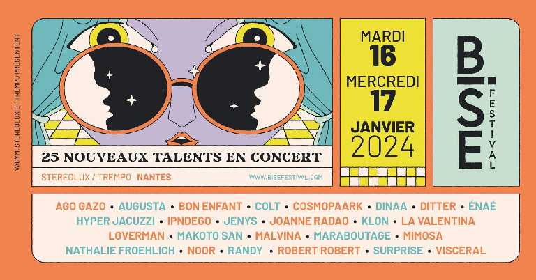 Ouvert aux professionnel·les de la musique comme au public, le BISE est organisé par l’association VADYM, composée des structures Bleu Citron, À Gauche de la Lune, Daydream Music, Yotanka et Mélodyn. Réalisé en coproduction avec Stereolux et Trempo, il s’inscrit dans le programme officiel des Biennales Internationales du Spectacle 2024 dont il est partenaire.