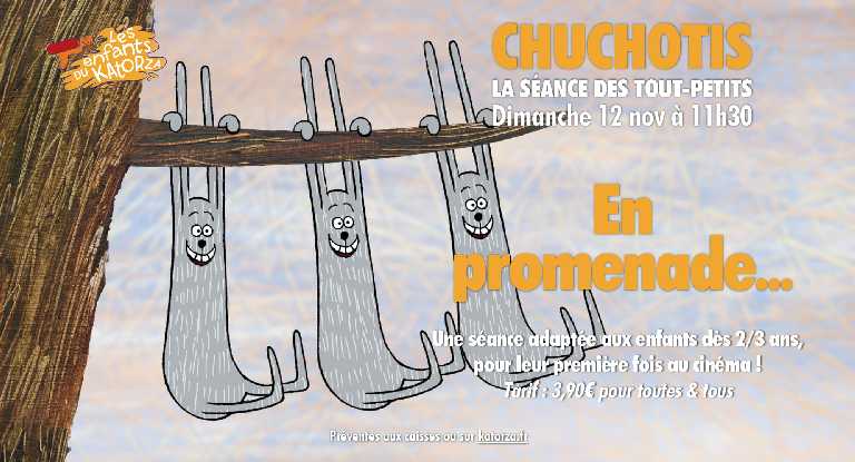 Chuchotis, la séance des tout-petits : une séance adaptée pour les enfants dès 2 ans, pour leur première fois au cinéma.