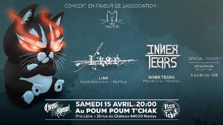 • INNER TEARS (Métalcore Nantes) : Avec un jeu de scène naturellement fou et décalé, l’objectif d’Inner Tears est de dénoncer des problèmes souvent tabous pour la majorité des gens, tout en transmettant toute leur énergie dans des riffs puissants, des mélodies entraînantes et un jeu de scène dynamique.