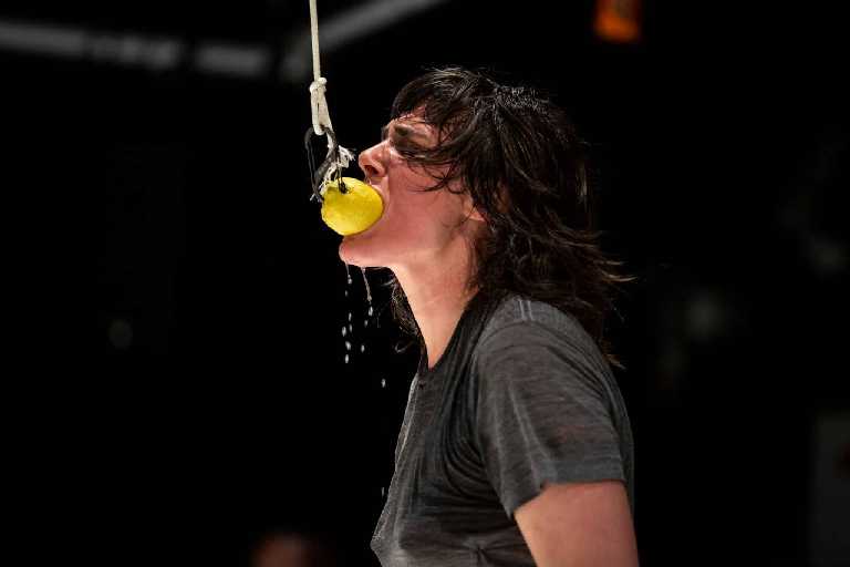 Avec 𝘚𝘱𝘢𝘤𝘦, la chorégraphe new-yorkaise 𝐅𝐚𝐲𝐞 𝐃𝐫𝐢𝐬𝐜𝐨𝐥𝐥 interroge la relation entre spectateur·rices et interprètes. Au cours d’un rituel très physique – elle tire des cordes montées sur poulies ou soulève des poids – elle exhorte le public à faire corps commun pour exprimer des émotions diverses.