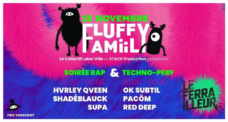 💫 Le Collectif Label Ville et Stack Production présentent la “Fluffy Famiily” au Ferrailleur le 25/11. ✨