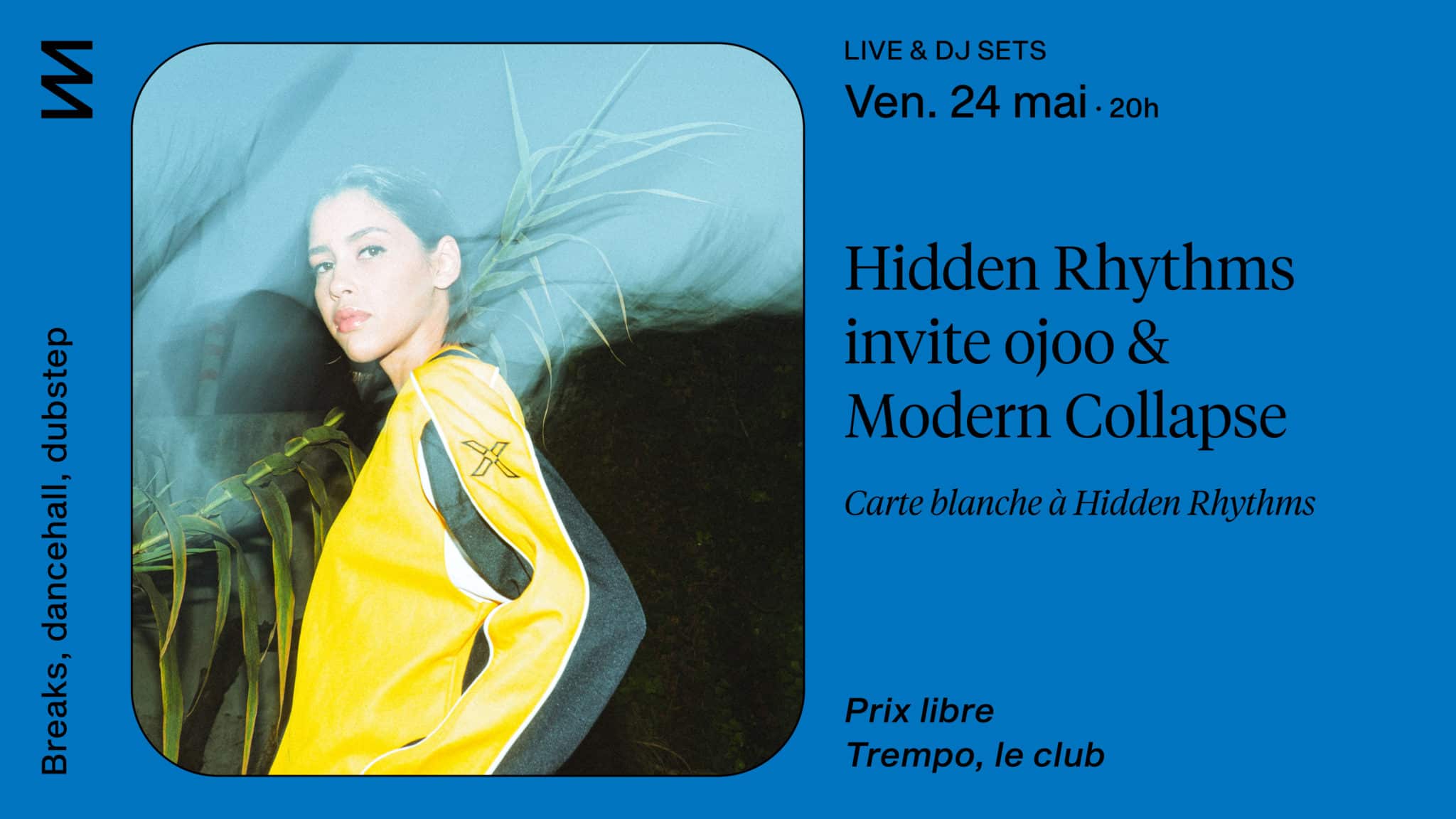 Pour cette soirée, le collectif nantais Hidden Rhythms rend hommage à l’électronique anglaise. Les invité·es ojoo (dancehall, Maroc/Bruxelles) et le duo Moderne Collapse (break, Paris) seront précédé·es des DJ sets de Slodki, Soa420 et Nitrosorry.