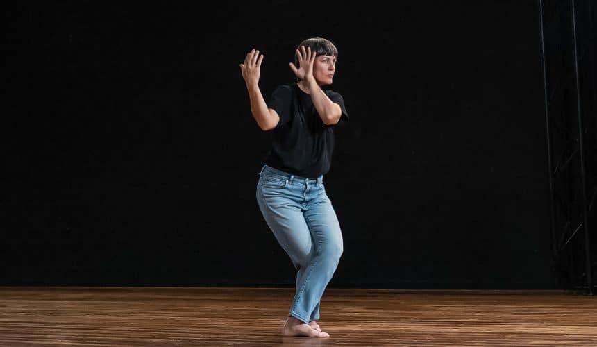 Pour faire émerger une danse située ici et maintenant, la danseuse fouille dans les sédiments de la mémoire et ses glissements de terrains : de lieux en lieux, elle déplace la mémoire des gestes, des gens et des pierres qui l’ont elle-même déplacée.