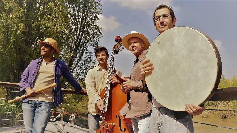 Avec Mourad Aït Abdelmalek aux percussions, Mickaël Dayot au chant, à l’accordéon et au ukulélé, Luc-Antoine Duret à la contrebasse et Adrien Rodrigue au violon, aux flûtes et à la scie musicale.