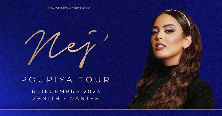 Après le succès incontestable du SOS Tour en 2022 avec des dates sold-out partout en France, et un Olympia à Paris rempli en 24h, Nej’ annonce son retour sur scène en 2023 avec le Poupiya Tour. Rendez-vous pour un spectacle magique et féerique, à l’image de la chanteuse.