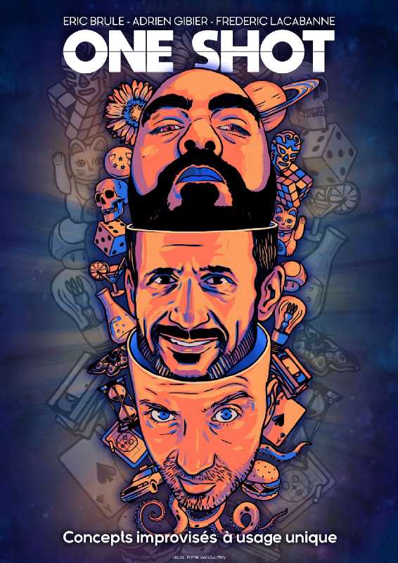 Vous voyez ces groupes de rockstars qui se séparent, chacun partant vers une carrière solo… Et puis un jour, contre toute attente, ils reforment le groupe pour une tournée exceptionnelle qui ravit les fans et les producteurs. Et bien One Shot, c’est ça : le spectacle des retrouvailles. Le trio jadis aux commandes du Burger Comedy Show se reforme pour deux spectacles de pure improvisation théâtrale où ils vont à nouveau mixer leurs univers et leurs talents dans la joie potache et la folie qui caractérisait leurs anciennes prestations au TNT.
