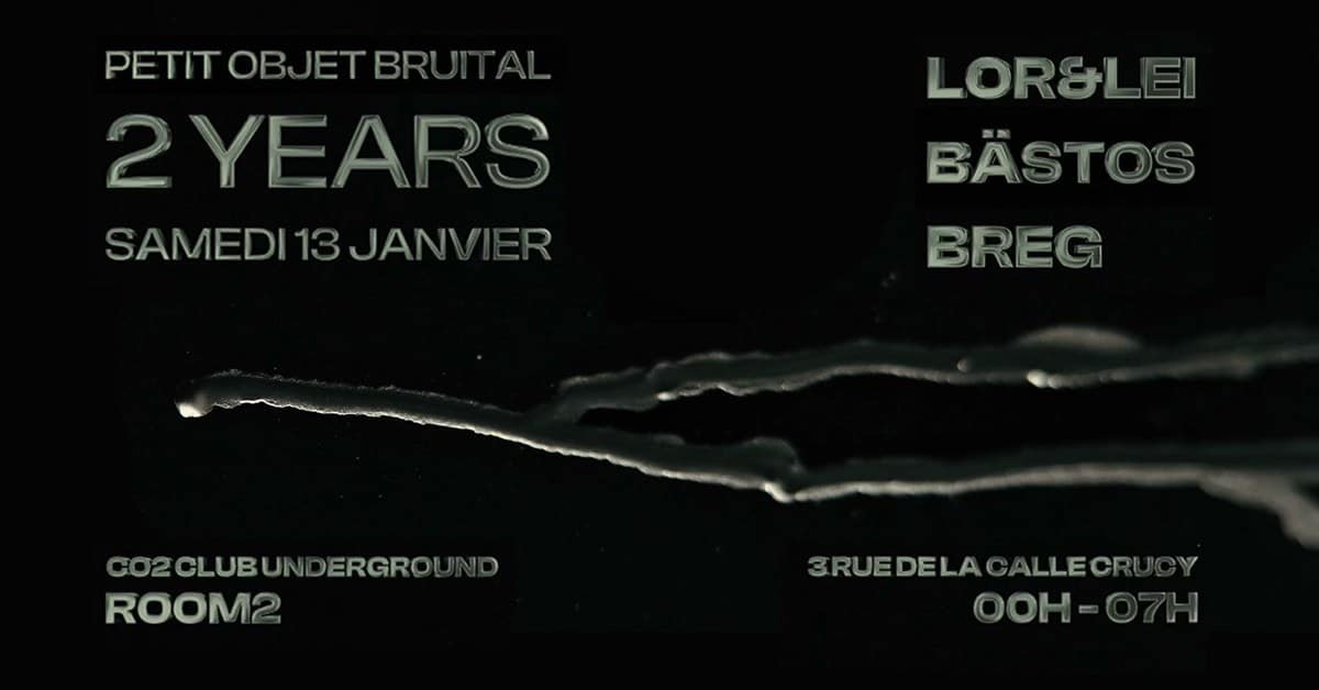 Le collectif POB – Petit Objet Bruital fêtera ses 2 ans de fêtes au CO2 Club Underground la nuit du samedi 13 janvier 2024.