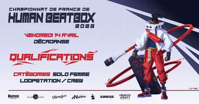 Cette année, le championnat de France de Beatbox revient à Nantes pour notre plus grand plaisir ! Pour cette première soirée qui se déroulera à Décadanse, nous pourrons retrouver 3 épreuves : Solo Femmes, Loopstation & Crew accompagnées de showcases de jury d’exception. 🔥