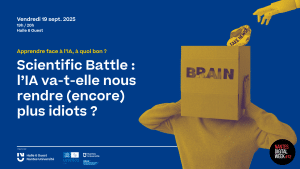 Si l’IA apporte une réponse à toutes nos questions, ne fragilise-t-elle pas aussi nos capacités cognitives, au risque de nous rendre plus idiots ? Associez votre passion pour le débat, l’IA et Rocky lors d’une battle entre chercheurs qui défendront l’IA ou la détruiront, et votez pour l’équipe qui vous aura le plus convaincu ! Un événement programmé dans le cadre de la Nantes Digital Week et de la journée “Apprendre face à l’IA, à quoi bon ?“. Apéro offert en fin de battle.