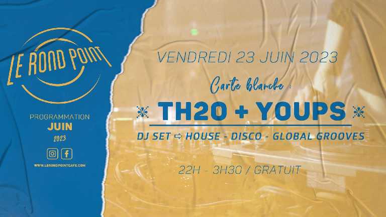 Les deux artistes se sont rencontrés directement lors d’un savoureux B2B à la Safe Place en 2021. Aujourd’hui, TH2O et YOUPS se retrouvent derrière le booth du Rond-point pour un B2B endiablé qui promet de mélanger des influences house, disco, funk, pop, break beat, new beat et autres dance music des quatre coins de globe.