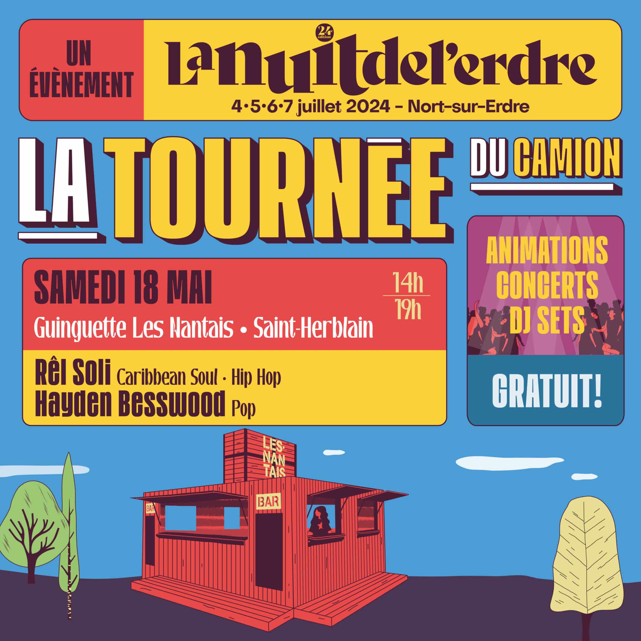La Nuit De l’Erdre part en tournée ! Après une 2e édition réussie, le festival se rend près de chez vous pour vous faire vivre l’expérience La Nuit De l’Erdre 🚒 À l'aide d'un camion de pompier des années 40 aux couleurs du festival, l'équipe propose une tournée dans des lieux emblématiques de Nantes Métropole...
