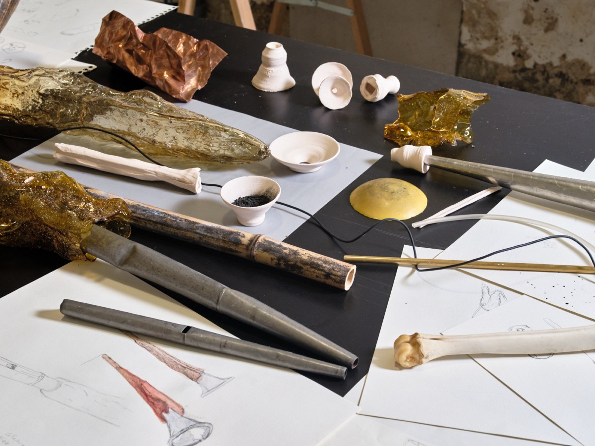 Issue d’une résidence de recherche et d’expérimentation, le travail de l’artiste plasticien Alan Affichard, présenté dans cette exposition, prend racine dans une archéologie visuelle de la flûte. En dépouillant cet instrument à vent pour en explorer son essence, l’artiste fait émerger une généalogie sensible des formes de souffle — pneumatiques, aquatiques, électroacoustiques, thermoacoustiques. En dialogue ... Lire plus