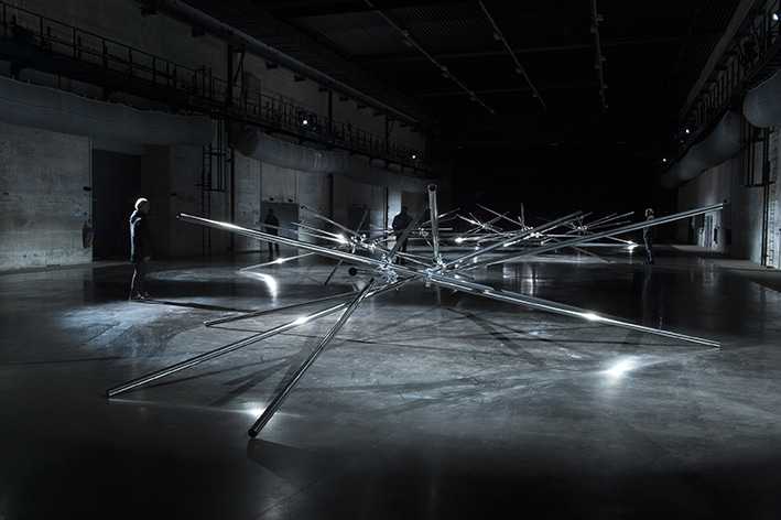 Envie d’être une mouche ? Claude Lévêque propose au LiFE, une oeuvre qui s’amuse des capacités visuelles de l’insecte envahissant. Human Fly est créée sur-mesure pour la salle gigantesque située sous un toit constitué de tonnes de béton pour protéger l’ancienne base sous-marine des bombes. Issue d’un mélange de disciplines artistiques – son, lumière, sculpture,…– l’œuvre immersive plonge le public dans le noir. Grâce à un jeu de lumières stroboscopiques éclairant des tubes en inox brillant imbriqués comme des Mikados, elle désarçonne les yeux humains. Les flashs reproduisent la vivacité de la vue des insectes, produite chez eux grâce à une multitude de facettes : les mouches peuvent voir dix fois plus d’images par seconde que nous ! Human Fly s’amuse à désordonner les sens en nous mettant dans la peau de ces êtres volants.