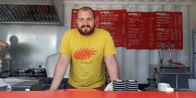Depuis quelques semaines, Jean Le Mancq a ouvert La Sablière, guinguette de Sainte-Luce-sur-Loire accolée à la commune du bord de Loire (à 20 minutes de Nantes à vélo). La guinguette créée dans le cadre du Voyage à Nantes est gérée par les équipes de la Station Nuage et de la Cantine du Voyage, tous membres du Festival électro Paco Tyson, avec qui Jean collabore depuis 2018. Ce Sébastiennais de toujours travaille depuis près de dix ans dans la culture et partage ses activités entre les platines et les festivals. La Sablière, comme son nom l’indique, fait référence aux activités d’extraction du sable caractéristique des bords de Loire, avec des usines de sable disséminées autour. Pour lancer la guinguette sur de bonnes bases, Jean s’est donc entouré de sa compagne Soazic, forte de son expérience dans la restauration, qui lui permet de s’occuper de la partie événementielle de La Sablière, avec des dj sets tous les samedis après-midi.