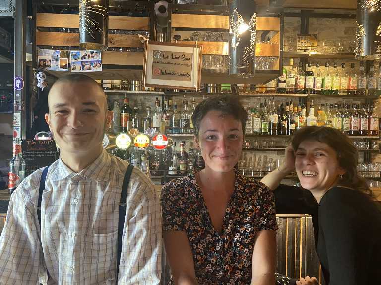Avant d’être programmatrice pour ce bar à la grande terrasse donnant sur les douves du Château des Ducs, Cassie, modéliste de métier, a voyagé. Londres, Rotterdam ou les Caraïbes, la Nantaise travaillait pour des maisons de couture ou des boutiques de prêt-à-porter, sans parler de son entreprise de sweats à capuche pour chats. En novembre 2021, elle débarque alors au Live Bar et s’occupe depuis de la programmation quand elle ne sert pas des cocktails derrière le comptoir. Le bar-concert propose pop, punk, rock et rap (qu’elle aimerait mettre prochainement plus en avant) le tout gratuitement car « tout le monde devrait avoir accès à la culture », explique-t-elle. Prônant la convivialité, l’équipe organise aussi régulièrement des soirées stand-up ou des vernissages accompagnés de dj sets ou des jam sessions.