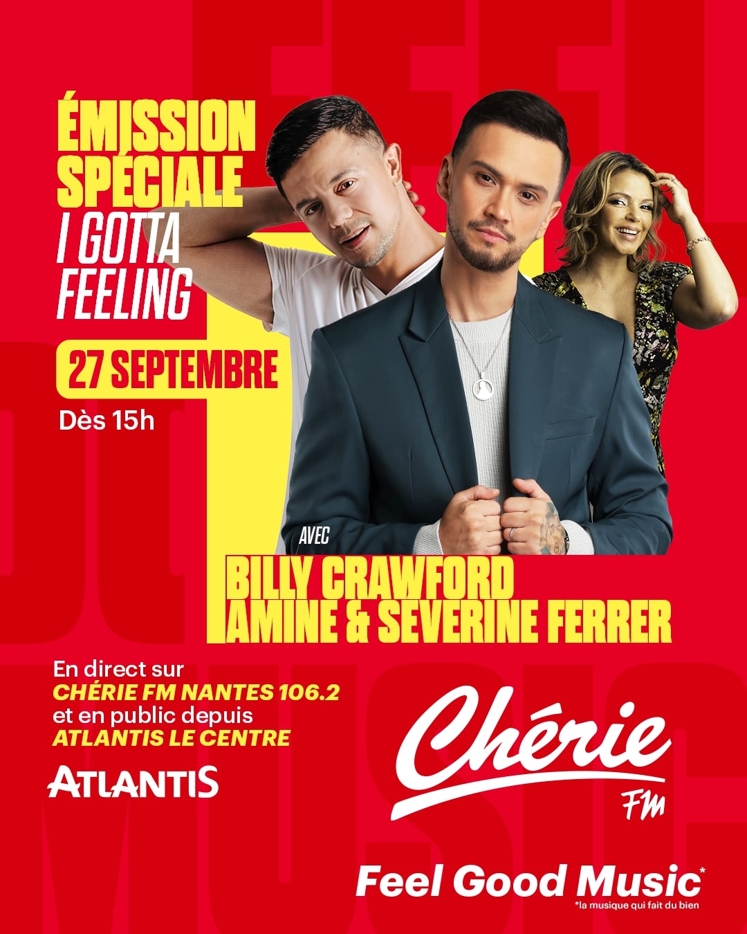 Atlantis Bd Salvador Allende, Saint-Herblain, FranceÀ quelques heures du concert événement "I Gotta Feeling" au Zénith de Nantes avec Chérie FM : venez rencontrer Billy Crawford, Amine et Séverine Ferrer ! Rendez-vous vendredi 27 septembre de 15h à 17h sur Chérie FM Nantes pour une émission spéciale en direct et en public depuis Atlantis Le Centre ! Venez leur poser...