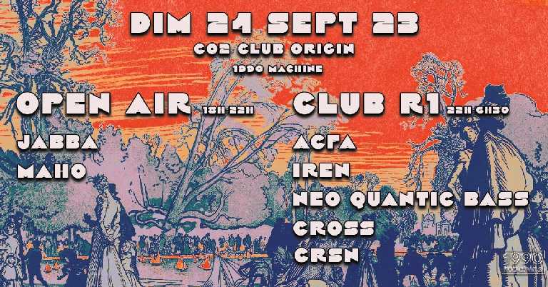 CO² Club Origin 3, rue de la Cale de Cruçy, Nantes, FROpen Air ! Prépares toi à une journée empreinte de techno groovy et d'une atmosphère ensoleillée. Retrouve ton collectif préféré le DIMANCHE 24 Septembre pour un open air suivie d’une R1 au CO2. ___OPEN AIR___ 18 H - 22 H JABBA Soundcloud : https://soundcloud.com/zarkow-673986088 Instagram :https://instagram.com/jabbamzr_ MAHØ ( Continuum ) Soundcloud : https://soundcloud.com/matheo-hode Instagram :...