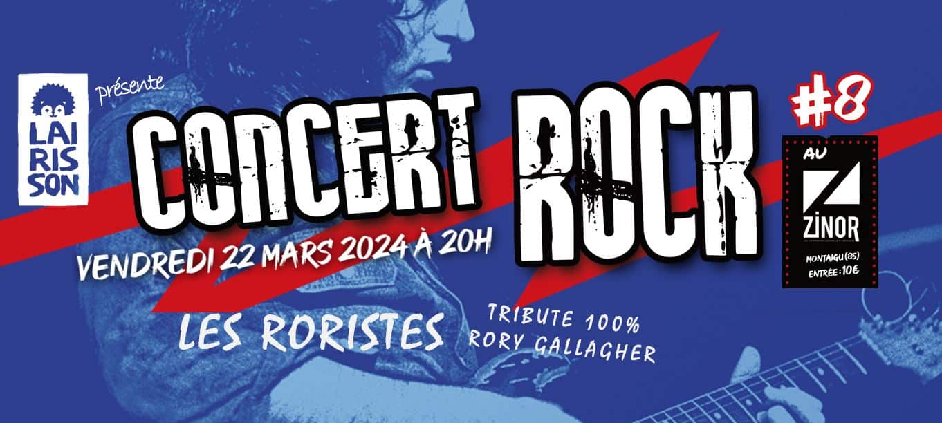 Le Zinor 191, rue du Moulin Gros, ZA Nord et Gare, Montaigu, FRConcert rock #8 Lairisson 🦔 10€ Sur scène : Les Mercury (indie pop) & Les Roristes (tribute 100% Rory Gallagher de Monsieur Philippe Ménard) 🎸 Intermède musical : C'Doll & Co Du rock indie, du rock de légende, de la bossa ... chouette programme 😍 Bar et Food-Truck sur place 👍🚒 Billetterie ouverte à l'Entrepotes...