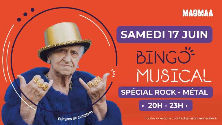 Magmaa Food Hall Nantes 15 Rue la Noue Bras de Fer, Nantes, FRA tous les amoureux du rock et du métal qui n'ont pas eu leur place pour le Hellfest ! Venez vous consoler chez Magmaa autour d'un apéro entre potes et participez à un Bingo Musical spécial soirée de la consolation. Au programme : 20 h : Bingo Musical anthologie du rock 👨🎤 21h15 : Métal...