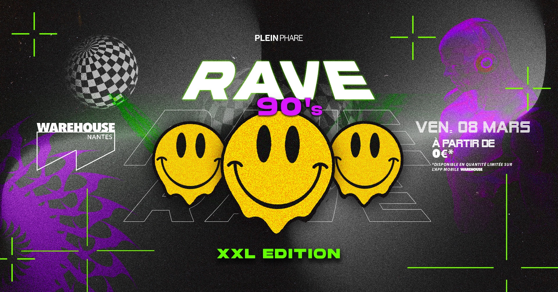 Warehouse 21 Quai des Antilles, Nantes, FRPour la première fois à Nantes et dans le grand-ouest le WAREHOUSE reçoit : RAVE 90's XXL Edition w/ Plein Phare 𝙎𝙏𝘼𝙍𝙏 23H59 ▸ 𝙀𝙉𝘿 06H30 Electronic Musique 90’S - VJING 90’S Venez danser exclusivement au rythme de la musique RAVE d’époque et retrouvez les classiques des années 90. Techno, Tekno, Hard Tek, Rave, Gabber,...