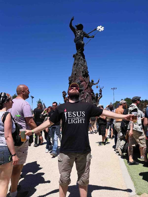 Je trouve rapidement mon bonheur en faisant enfin le tour des créations visuelles imaginées pour le site clissonnais. Le nouveau bar Mainstage est sublime et crache de la fumée, l’installation d’un mur d’eau sème la joie, l’émerveillement et l’hydratation chez les festivaliers, et je ne me lasse pas de redécouvrir les œuvres d’art déjà présentes les années précédentes. Le site n’a jamais eu autant de gueule, et je bénis encore une fois les organisateurs d’avoir réussi à créer une telle merveille. D’autant que je reviens tout juste du Download, qui essaie en vain de recréer l’aspect Mad Max du Hellfest avec des tas de pneus. Seul bémol peut-être : le pavage des Mainstage et de la Warzone, voulu car quelques personnes se sont plaintes de la poussière soulevée lors des concerts, endommage clairement l’ambiance bon enfant du festival. Je ne sais pas si quelqu’un tient des stats là-dessus, mais je suis prêt à parier que le nombre de “pogos” et autres “slams” va diminuer drastiquement sur ces scènes, sol en pierre oblige. À force d’en faire toujours plus, le Hellfest lui-même ne va-t-il pas un jour prendre plus d’importance que ses festivaliers ? Cette année en tous cas, un léger sentiment d’oppression se fait ressentir : de retour au campement après Meshuggah, j’apprends que nos tentes ont été bougées par des bénévoles afin de libérer de l’espace pour les nouveaux arrivants. Si je peux comprendre la logique derrière la manœuvre, il n’en reste pas moins la sensation d’être traité comme du bétail qu’on tasse pour en faire tenir le maximum dans un enclos. J’apprends aussi que les caddies sont dorénavant “interdits” sur le camping, alors que chaque année d’épiques combats de caddies nocturnes faisaient la joie des petits et des grands. Vous verrez que bientôt ils empêcheront les sacrifices humains du Yellow Camp…
