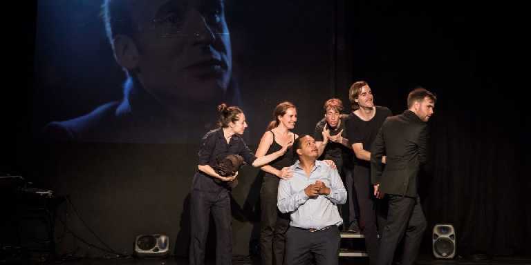 Profondément ancrée dans l’actualité, la pièce Je m’en vais mais l’État demeure s’écrit en même temps que son auteur, Hugues Duchêne, y vit les différentes intrigues. En véritable chronique artistique et journalistique de son temps, elle s’ouvre sur le procès de Jawad Bendaoud pour ensuite couvrir l’élection d’Emmanuel Macron, celle de Donald Trump jusqu’au mouvement des Gilets Jaunes. Sur scène, six comédiens interprètent la vie réelle et imaginaire de l’auteur tantôt au milieu d’un cortège de manifestants, tantôt infiltré au sein d’un mouvement du Rassemblement National. À la croisée du journalisme politique et de l’œuvre auto-biographique, la pièce se forme depuis 2016 et s’enrichit d’un nouveau chapitre par an, lui même en cours d’écriture jusqu’au soir de sa représentation.