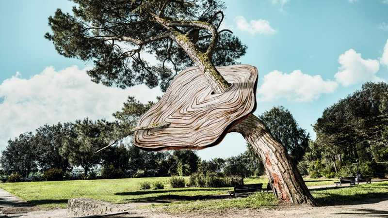 Avec comme thème « l’arbre dans la ville », la treizième édition du Voyage à Nantes remet la nature au centre du récit artistique. Dans le Chef-d’œuvre torse de Séverine Hubard, près du Miroir d’eau, la charpente s’inspirant du clocher de la Maison des Compagnons de Nantes s’imbrique directement autour du tronc d’un pin radiata. Un immense disque entoure aussi le Pinus Pinea en l’an 2252 de Yuhsin U Chang, symbolisant la taille que l’arbre pourrait atteindre à la fin de sa vie. Les artistes nous obligent à regarder ces formes végétales que l’on pensait immobiles, leur redonnant vie. Ils collaborent avec la nature, qui joue un rôle essentiel dans leurs œuvres : Fabrice Hyber compte par exemple sur l’eau ruisselante
